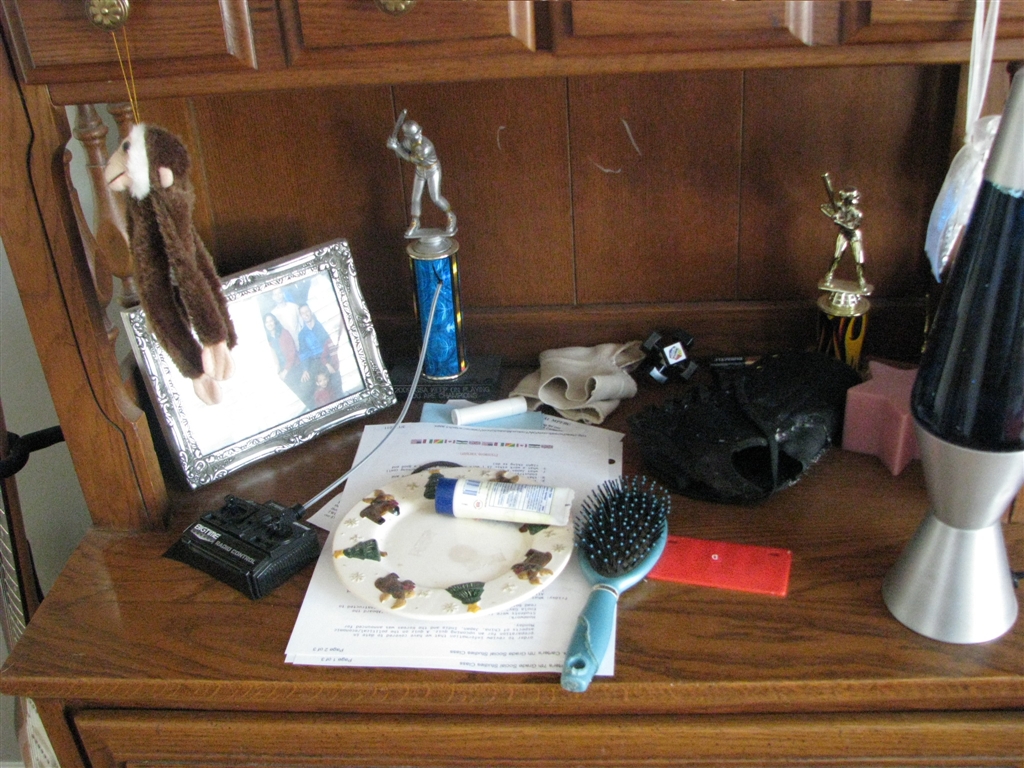 Her room wasn't super bad, like her brothers. She just needed her dressers and desk cleaned off, dusted, trash thrown away and some things sorted to give away or sell.